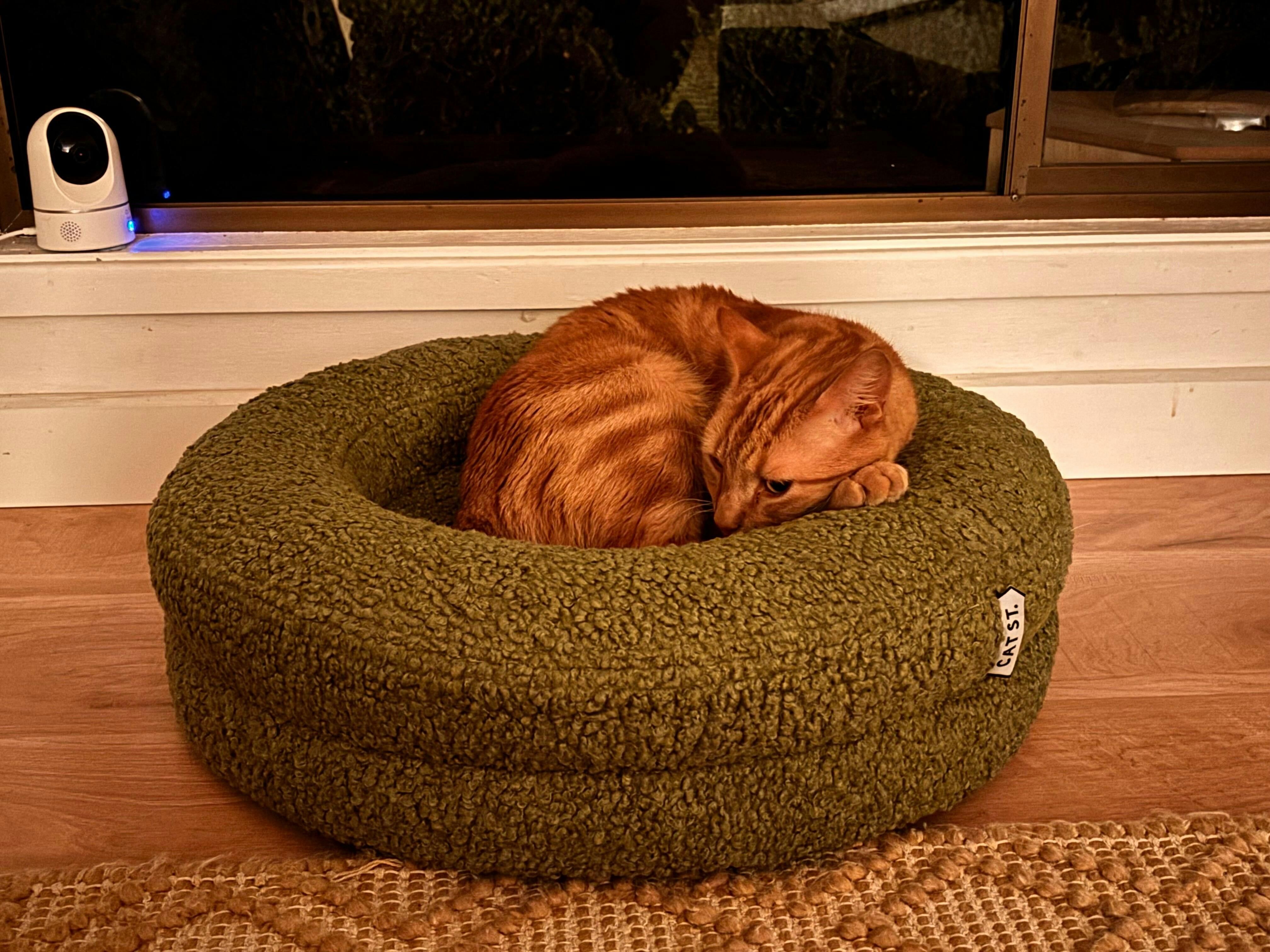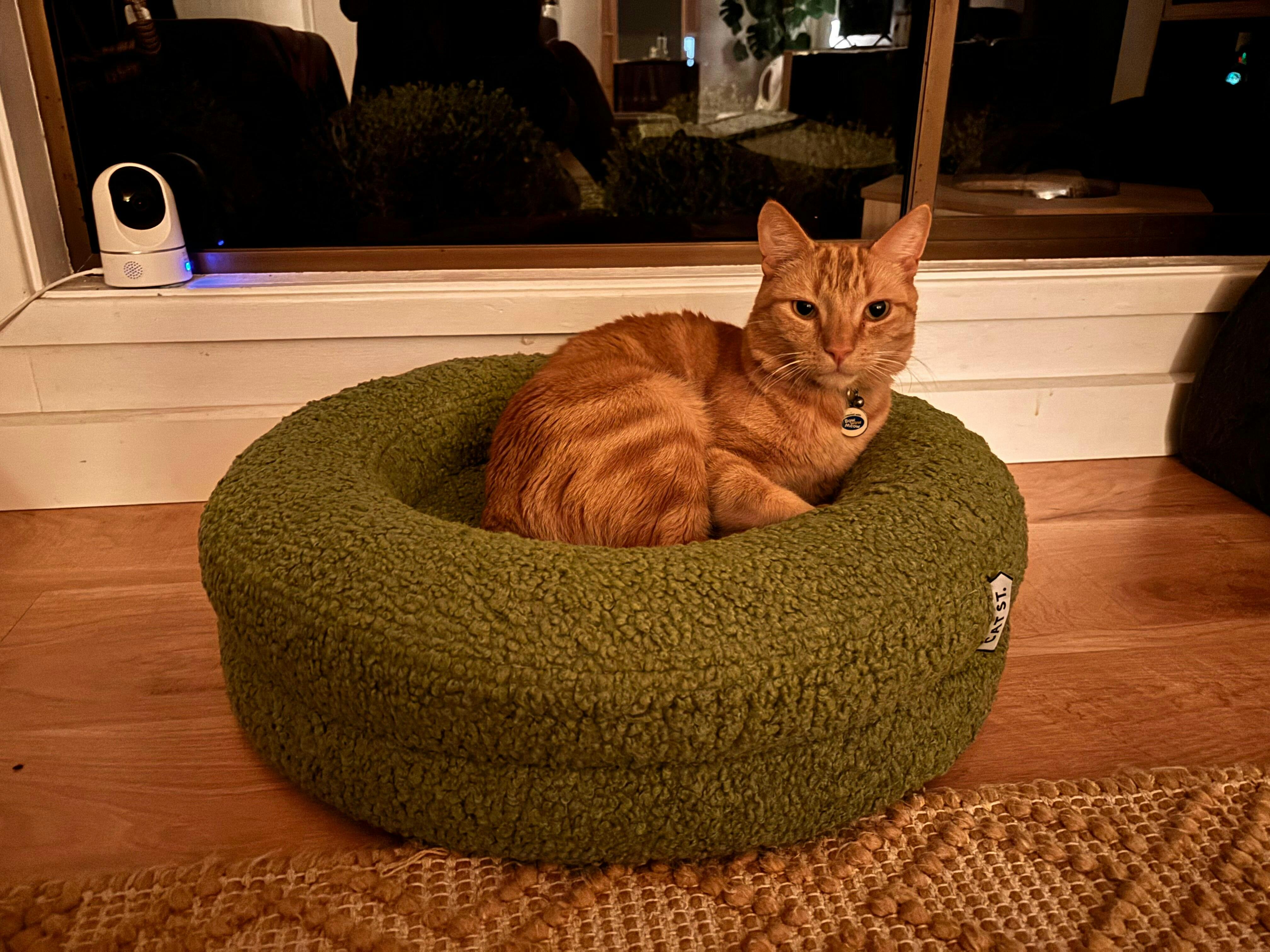 'This is the first time my cat has actually sat in a bed. Now I can't get him out!'