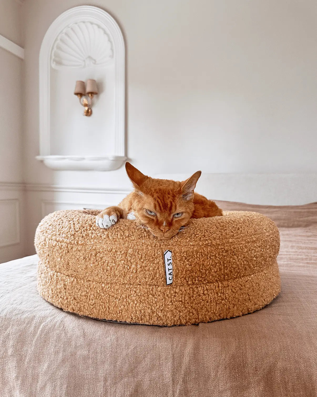 Sophie T.Our exclusive Teddy Fabric comes in four colorways: Milk, Catnip, Golden, and Rice Pudding. Super soft, double-lined, and designed to last, it’s been thoughtfully tested to withstand kneading and curious claws. Each cover features our premium YKK zippers for effortless removal and washing, and a non-slip base to keep the bed perfectly in place - wherever your cat chooses to snooze! Transform your Cat Street Bungalow into a luxurious, cozy retreat for your cat with our premium Teddy Covers.